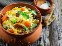(Half) Veg Biryani + Gravy Chaap